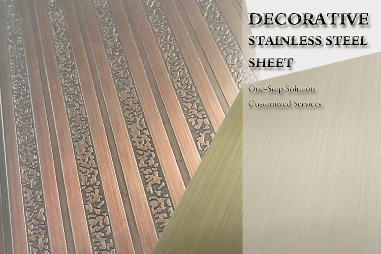 We have developed unique techniques to manufacture antique finishes on stainless steel. Antique finish is a process in which a metal electroplating coating is formed by continuous reduction of metal ions on the catalytic surface in an aqueous solution, independent of external power supply. For example, for a sheet of stainless steel substrate, the required substrate coating is stained first, and if the desired finish is bronze, the coating will be bronze too. After this coating process, there will be a unique internal production process to obtain the numerous variations of the design required for the antique finish. We have developed over 15 different variants, each color can be antique brass, antique bronze and antique copper. Each part of the sheet is unique and no two parts look alike. Product Description: This product so called Stainless steel demarea, the use of unique local aging and bleaching technology, so that the stainless steel surface presents different levels of natural texture, and the texture of each sheet is impossible to copy, only to be unique. This finish is suitable for the decorative style that does not break the design feeling again in ancient elegance *What is antique finish? We have developed unique techniques to manufacture antique finishes on stainless steel. Antique finish is a process in which a metal electroplating coating is formed by continuous reduction of metal ions on the catalytic surface in an aqueous solution, independent of external power supply. For example, for a sheet of stainless steel substrate, the required substrate coating is stained first, and if the desired finish is bronze, the coating will be bronze too. After this coating process, there will be a unique internal production process to obtain the numerous variations of the design required for the antique finish. We have developed over 15 different variants, each color can be antique brass, antique bronze and antique copper. Each part of the sheet is unique and no two parts look alike. *Advantage The use of antique liquid on the surface of stainless steel makes the coloring process more diversified, make the appearance more beautiful, but also improve the wear and corrosion resistance of stainless steel surface. *Please contact us for more patterns and customization requirements Product Parameters:| Product Name | Stainless Steel Antique Finish Decorative Panel Customization |